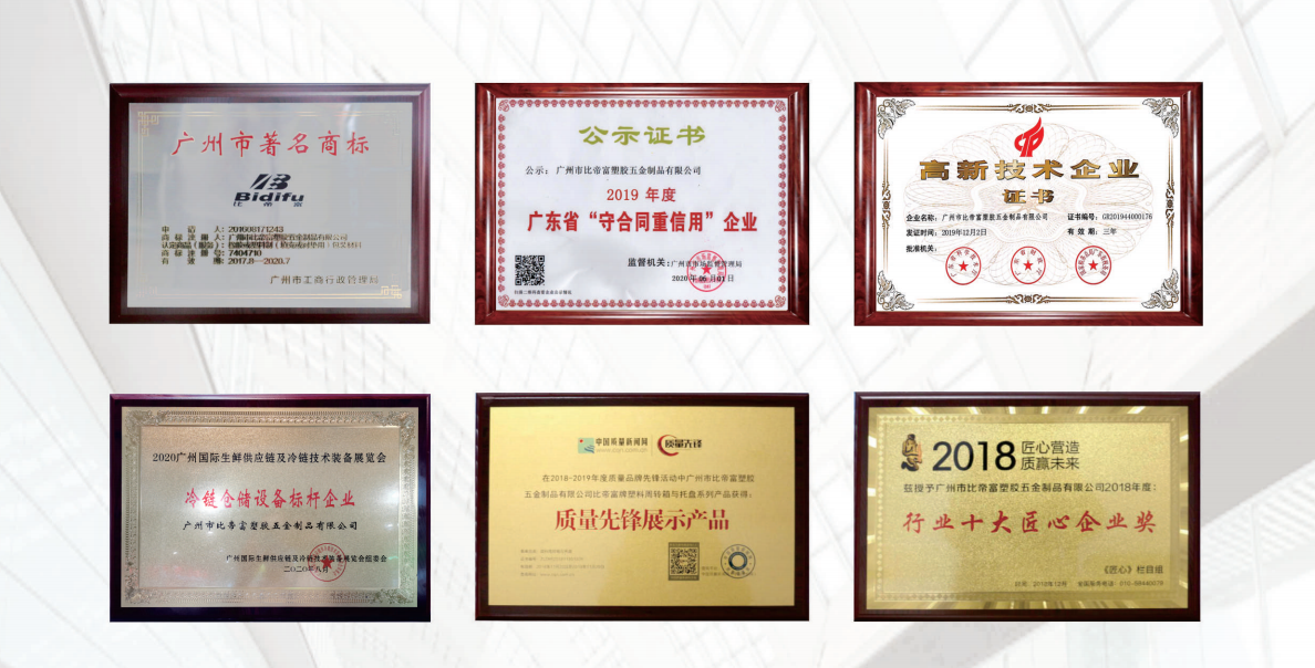 品牌“比帝富”,由英文“Beautiful”諧音而來,定位高品質。自創立以來,比帝富榮獲”廣東省專精特新中小企業”、“廣東省創新型中小企業”、“兩化融合企業“等多項企業認證,并連續十多年通過“ISO9001質量管理體系”、“ISO14001環境管理體系”、“ISO45001職業健康管理體系”的權威認證。此外,公司還榮獲了“廣州市著名商標”稱號,被評為“廣州市守合同重信用企業”,“廣東省誠信物流企業”,“廣汽豐田推薦供應商”以及“冷鏈倉儲設備標桿企業”,公司品牌榮登“CCTV老故事頻道匠心欄目展播單位”,產品獲得中國質量新聞網“質量先鋒展示產品”榮譽。